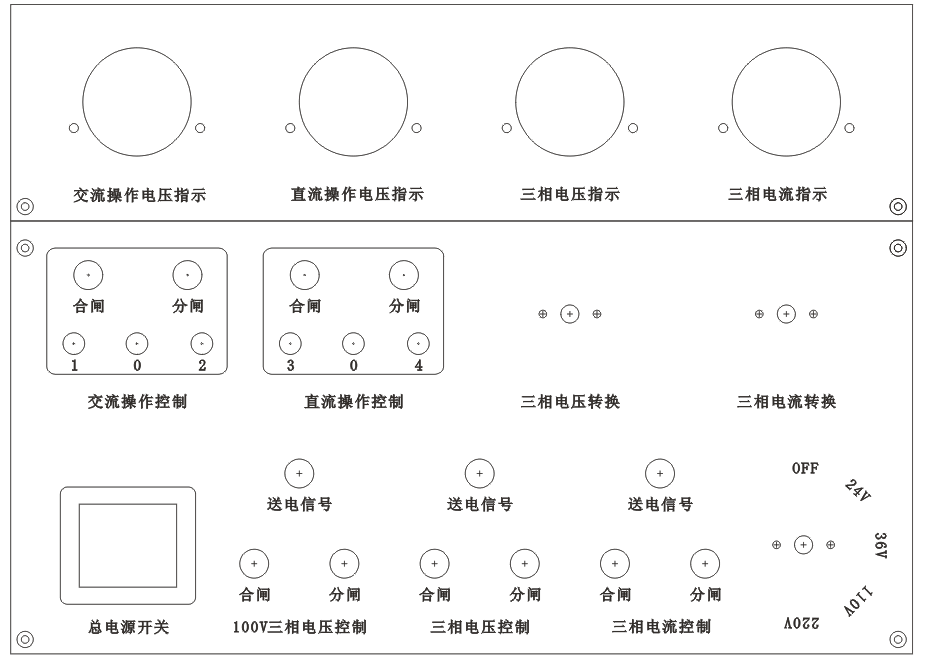 高低壓開關(guān)柜通電試驗(yàn)臺面板示意圖以及基本簡介