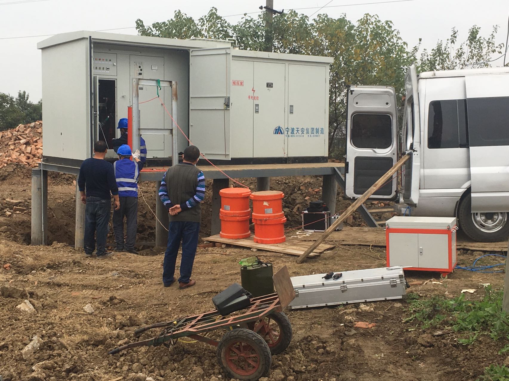 前幾天,我司儀天成電力接到荊州洪湖中鐵十三局集團(tuán)需求,需要我司給他們做試驗(yàn)站內(nèi)的高壓絕緣電纜耐壓試驗(yàn),以及絕緣電阻測(cè)試等方面內(nèi)容工作,我司這邊接到需求,就周日一大早馬不停蹄地帶上了眾多設(shè)備,馬不停蹄地趕往了荊州洪湖目的地,這次我司出動(dòng)了6名人員過(guò)去,設(shè)備這邊涉及有:串聯(lián)諧振系列:包括主機(jī)一臺(tái),激勵(lì)變壓器1臺(tái),電抗器8件,電容分壓器一件以及多種接線配件等等,然后再還有智能絕緣測(cè)試儀器一臺(tái)以及一些配件。
