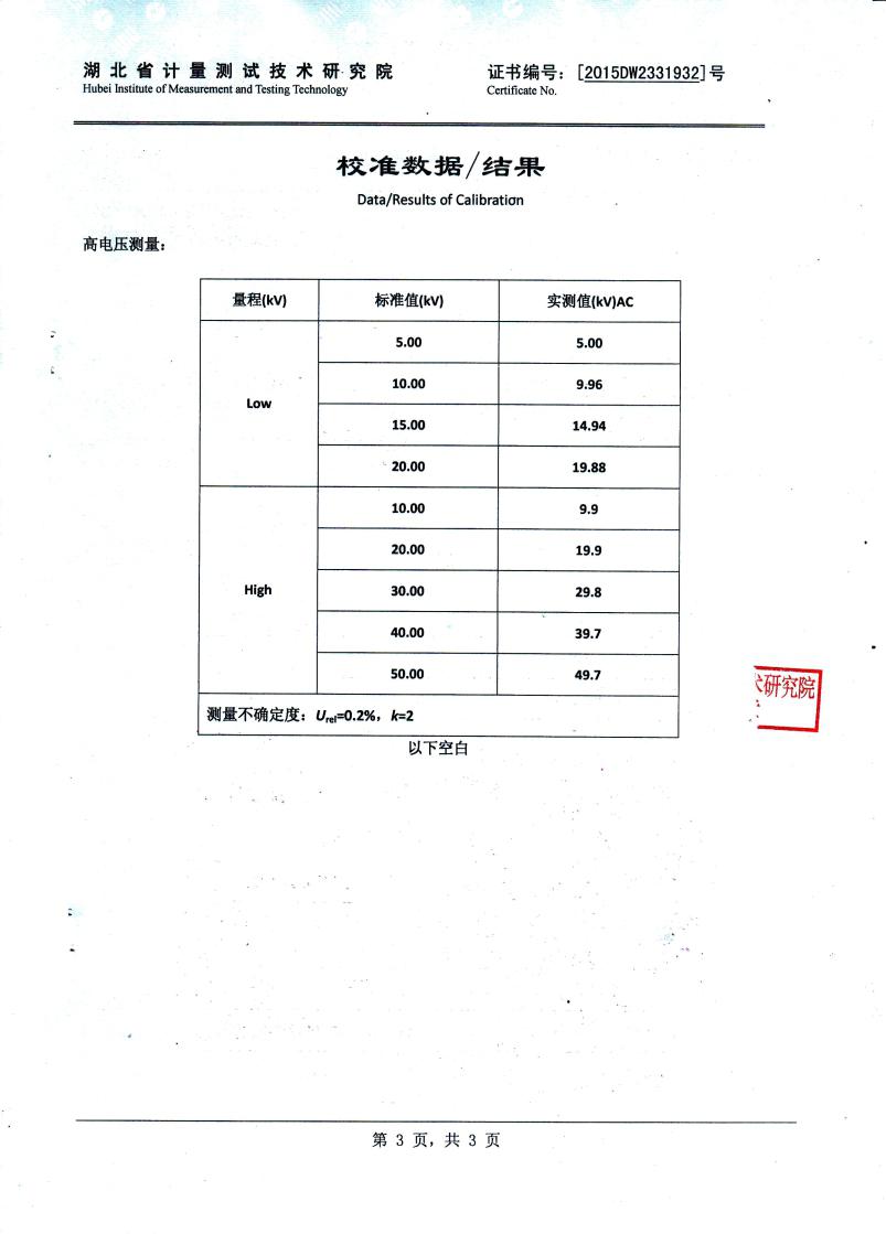 | 電壓等級 | AC:100kV DC:100kV | |